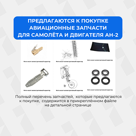 Предлагаетсяизучение спросаПредлагаются к покупке авиационные запчасти для самолёта и двигателя АН-2. Полный перечень запчастей, которые предлагаются к покупке, содержится в файле в разделе "Документы по предмету торгов". Возможна покупка запчастей одного наименования в представленном количестве. Гайка основного колеса АН -2 Гайка хвостового колеса АН -2 Дверь шпангоута № 15 Двусторонний лючок Двух плечевая качалка подогрева карбюратора Двух плечевая качалка сектора газа и ВАК Демпфер Д 002 Т Демпфер Д 003 Дефлектор 34-153 Дефлектор 34-206 Дефлектор 34-795 (62-36-90) Дефлектор 34-805 (622-36-170) Дефлектор 62-36-40 Дефлектор б/н 1 Дефлектор б/н 2 Дефлектор б/н 3 Дефлектор б/н 4 Дефлектор б/н 5 Дефлектор б/н 6 Дефлектор б/н 7 Заборник трубы обдува магнето Задний узел Заливной шприц Замок грузовой двери № 1 Замок грузовой двери № 2 Защитный кожух Ш 6970-400Т Кольца выхлопного коллектора Кран 3-х ходовой Кроштейн крепления зеркала Кроштейн управления рулем высоты Левый капот двигателя Линейка маслобака Наконечник шланга Обтекатель амортстойкий правый Обтекатель кронштейна управления рулем поворота Обтекатель подкоса Обтекатель тяги управления закрылками Ось хвостового колеса Петля подвеса грузовой двери Подножка фюзеляжа Подшипник основного колеса Подшипник хвостового колеса Полукольцо Постамент крепления воздушного баллона Правая крышка капота Распорная втулка хвостового колеса Секция выхлопного коллектора № 1 Секция выхлопного коллектора № 5 Секция выхлопного коллектора № 6 Секция выхлопного коллектора № 7 Секция выхлопного коллектора № 8 Секция выхлопного коллектора № 9 Секция выхлопного коллектора №3 Тормоз 24-5615-40 Триммер руля высоты Тросик заземления Трубка штока клапана Тунель маслорадиатора Тяга Ш 6500-187 Тяга Ш 6500-188 Тяга Ш 6500-213-1 Тяга Ш 6500-213-2 Тяга Ш 6500-213-3 Тяга Ш 6500-220 Тяга Ш 6500-221-4 Тяга Ш 6500-222 Тяга Ш 6900-133 Тяга Ш 6908-45 Тяга Ш5000-9 Тяга Ш5300-10-1 Тяга Ш5300-10-2 Тяга Ш5300-10-5 Тяга Ш5300-48-2 Тяга Ш5400-24-1 Тяга Ш5400-24-2 Тяга Ш5400-24-3 Узел крепления моторамы Фетровый уплотнитель хвостового колеса Хвостовое колесо Чехол на АН-2 АК-50 АКМ-62 Амортиз. хвостовой установки Амортизационная стойка шасси Бензобак Бензонасос БНК-12БК Бипланная стойка Блок управления РК-35 верт. ВАК-1 Верхние крышки капота Внутренний капот Воздушный вентилятор ВВР верт. Втулка хвостового винта МИ-2 Выхлопная трубка Ш 6500-2 Выхлопной колектор Генератор ГО-16П48 ГА-77Н Генератор ГСН-3000М Гидродемпфер верт. Гидромотор ГМ-36/1 Главный вал (вертолетный) Дверь грузовая Дверь пилотской кабины Демпфер Д-004 Демпфер ПУ-8 Дефлектор 34-807 ДИКЖ-4 Диски 500*150 Диски 600*180 Дренажный кран с тройником Заслонка карбюратора Заслонки маслорадиатора Заттенитель цилиндра Капот нижний Клапан 2176Г Клапан впускной Кок винта Коллектор противопожарный Ш 6600-27 Колонка штурвальная Кольцо копота Кольцо поршневое на АН-2 Кран 3-х ходовой Кран ГА-142/1 Кран ГА-163Т/16 Кран МШ 7611-200 Кран УЭ-24/1-2 Крышка клапанная Крышка копота левая Крышка копота правая Крышка фильтра топливного бака Лыжа хвостовая М/рама Магнето БСМ 9 Магнето БСМ-9 Манжета Маслорадиатор 1106 Масляный насос МШ-8А Машина рулевая 5023 Мех-зм управления закрылками УЗ-1Ам Механизм управления створками УР-10 Механизм управления триммером УТ-6Д Мотор стартера СА-189 Насос НД-24МК Насос ЭЦН-14БМ Нижние створки капота Обратный клапан Обтекатель маслорадиатора Ось М 4200 Ось М4200-1 Патрубок выхлопной ПВД-6М Педали упр