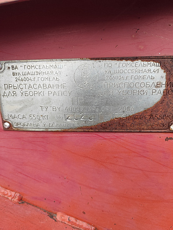 Характеристики (назначение, описание составных элементов и иное)Приспособление для уборки рапса ПР-6 с жаткой, год выпуска 2009, инв.№206
